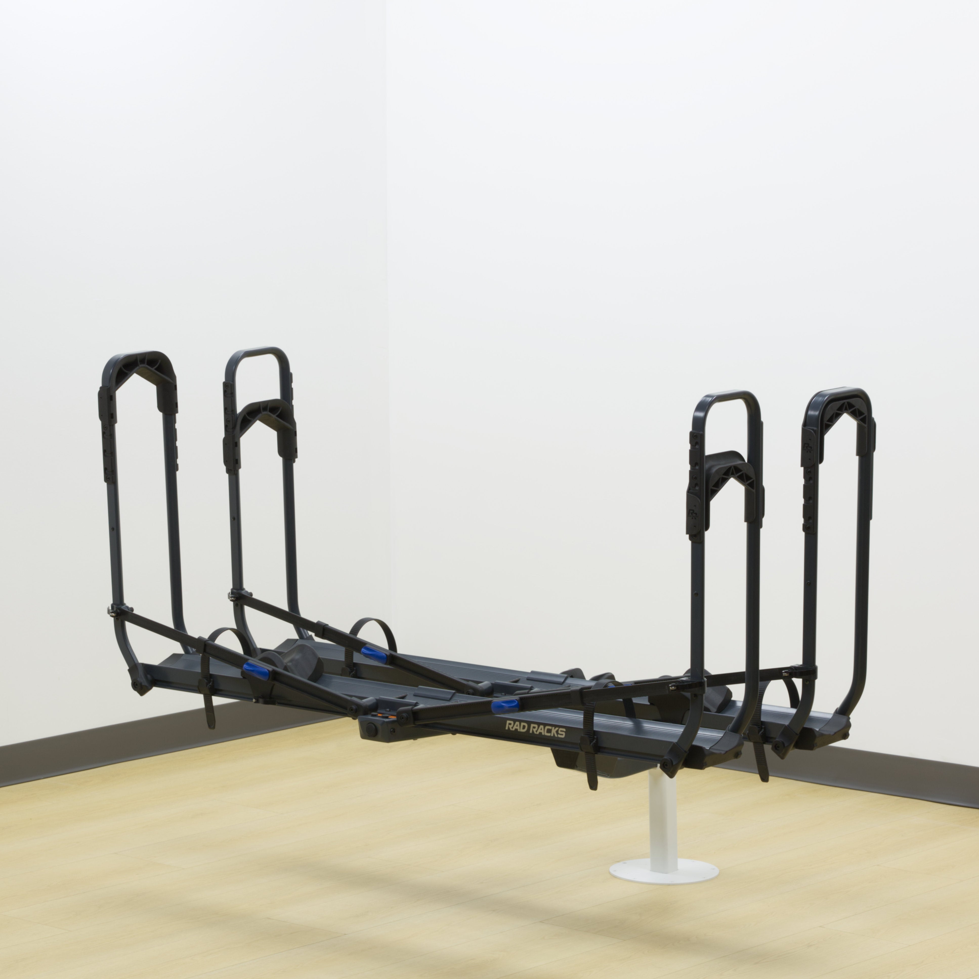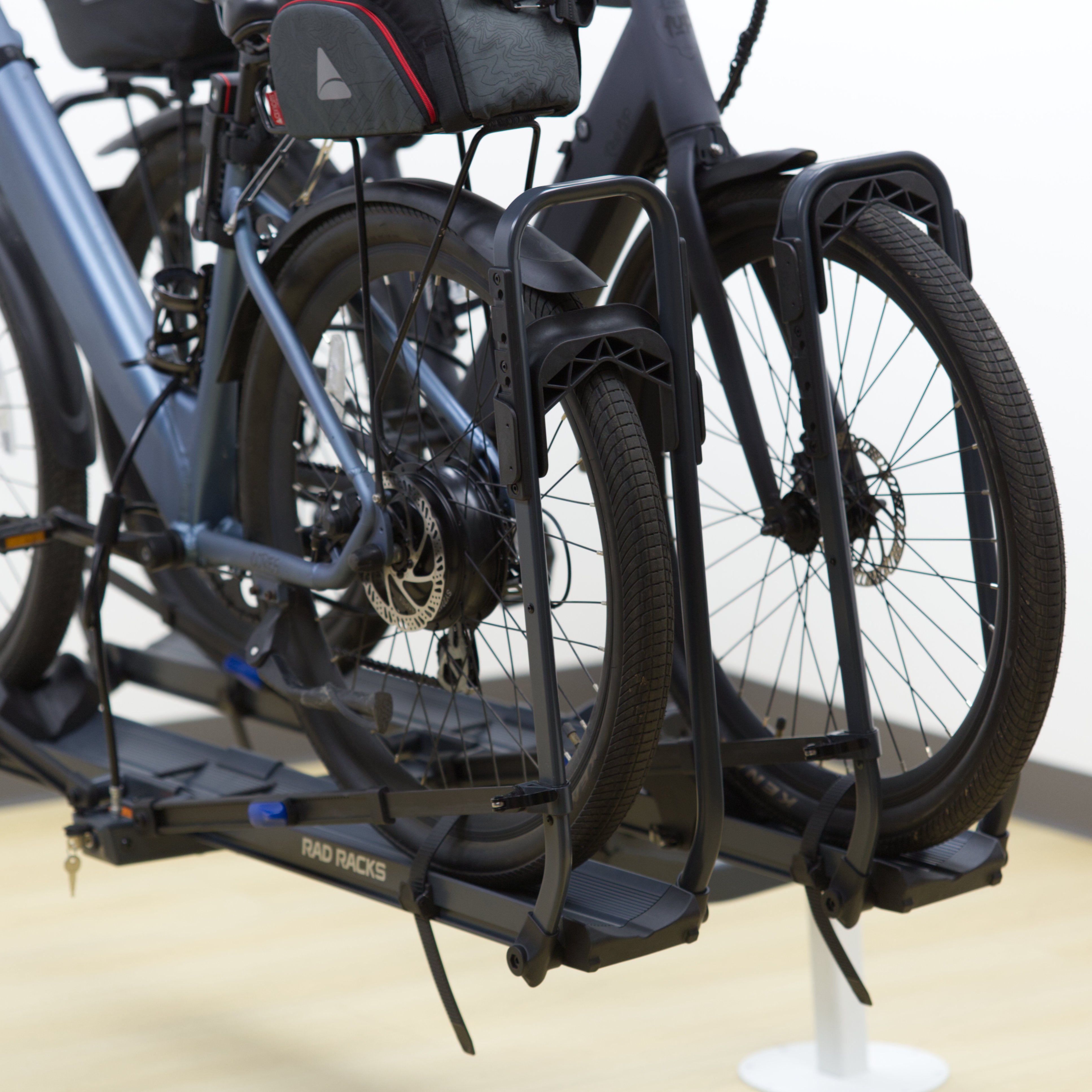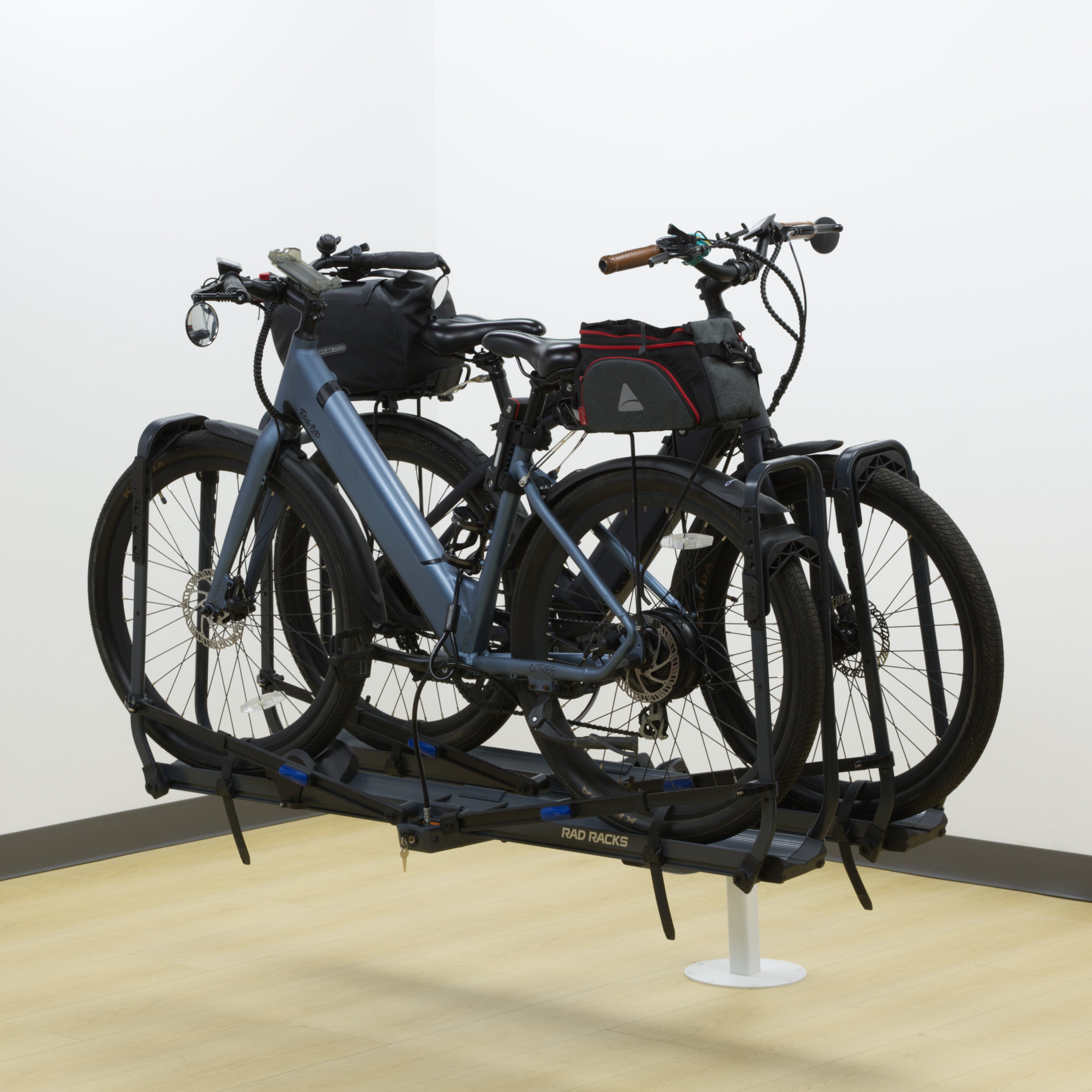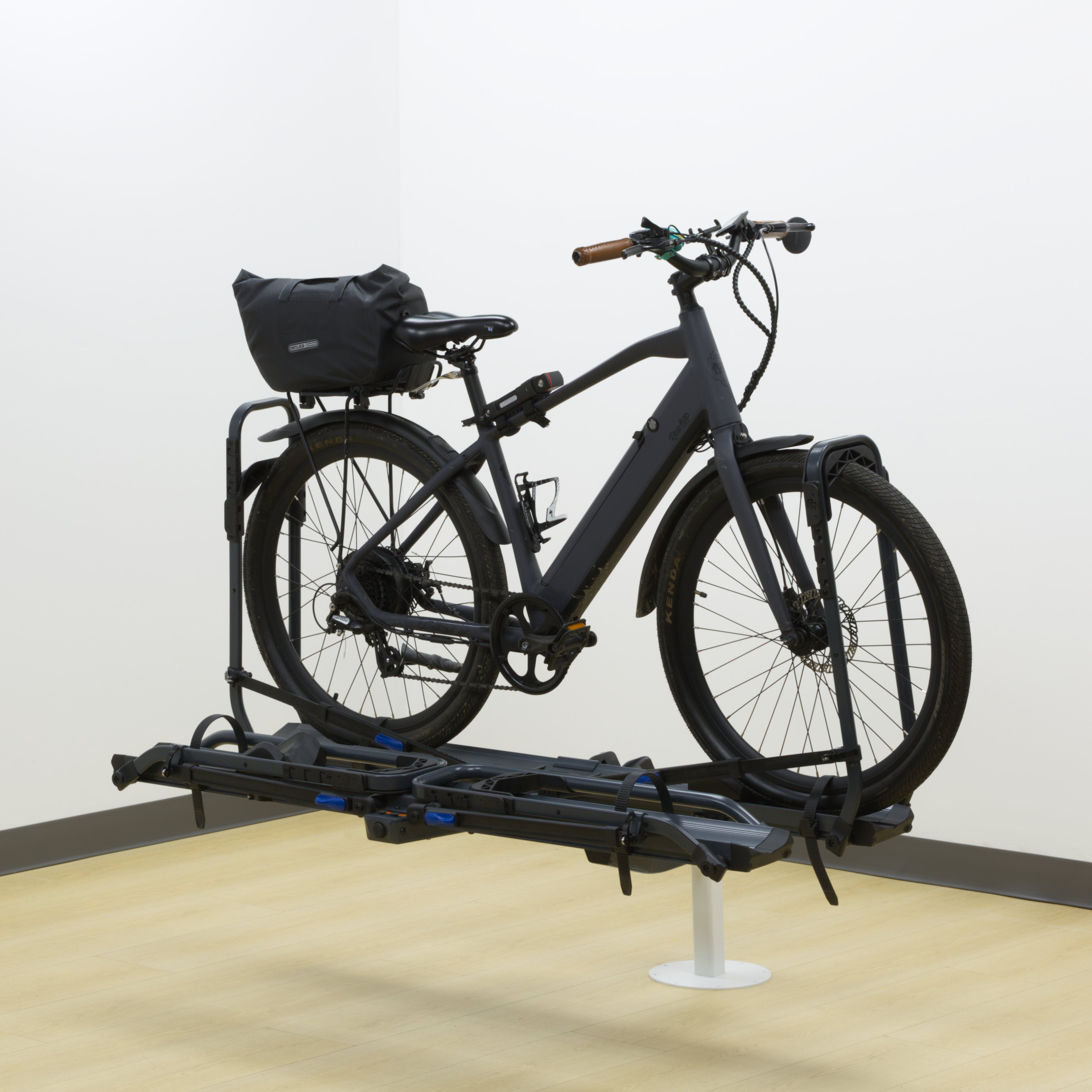 The P2 Max is the ultimate e-bike platform bike rack. With weight capabilities of up to 100lbs per tray (200lbs total), a built-in bike ramp for easy-loading, and integrated wheel stabilizers & straps, the P2 Max is unmatched for heavy bike transportation.
